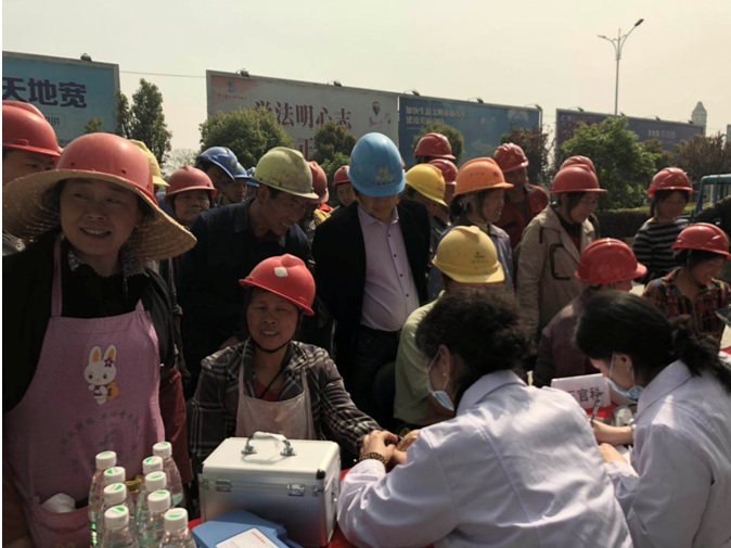 2019年4月17日上午9时,开云在线登录官网-开云中国 承建的徽州碧桂园德源项目工程东大门,人声鼎沸、欢声笑语,每个人脸上都洋溢着幸福的笑容,他们排着队,有组织、有秩序地参加由碧桂园德源工程施工项目部组织的“关爱健康、免费体检”活动。此次体检活动邀请了屯溪同仁门诊部的四名医生,分科体检,对每位职工的心率、血压、外科、口腔等做了细致的检查,并做好体检记录,同时对工友们关心的日常生活问题、常识做了解答和温馨提示,此次项目部参加体检人员惠及95名。本次活动是为了增强员工关怀,保障员工身体健康,营造”平安、和谐、幸福、美丽”的示范工地。