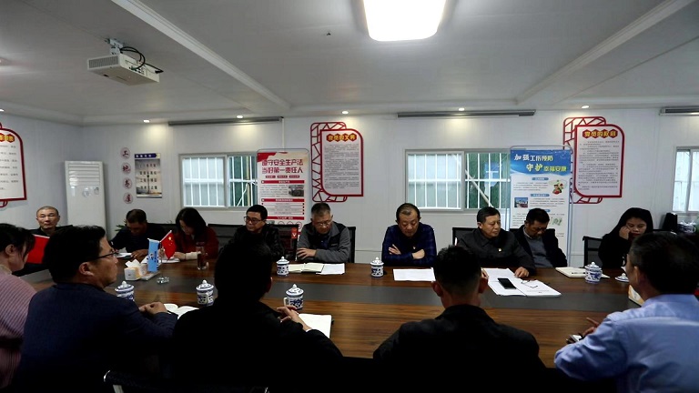 接着建工集团总支委员、总经理叶金发同志作了文澜轩“智慧工地”、“最干净标化工地”、“红色工地”创建工作情况汇报。
