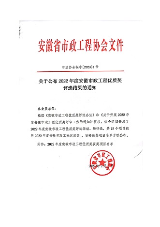 根据《安徽市政工程优质奖评选办法》和《关于开展2022年度安徽市政工程优质奖评审工作的通知》要求,安徽省市政工程协会组织开展了2022年度安徽市政工程优质奖评选活动。开云在线登录官网-开云中国