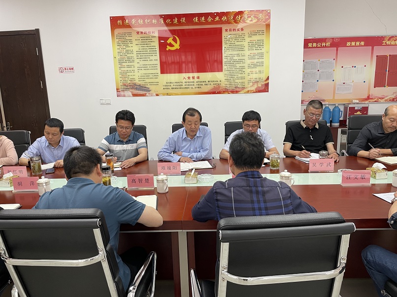 总党支部书记,董事长项端阳、副董事长许自兵、总经理叶金发、副总经理吴学武、各子公司负责人参加。