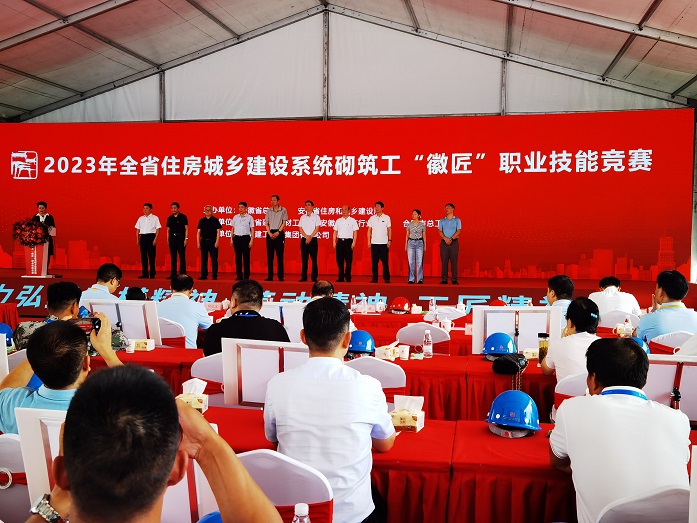 为全面贯彻落实党的二十大精神,认真贯彻落实习近平总书记关于安徽工作的重要讲话重要指示精神,广泛和深入开展劳动技能竞赛,充分发挥工人阶级主力军作用,促进广大一线作业人员技能水平全面提升,推动安徽建筑行业高质量发展。7月14日至15日,由安徽省总工会、安徽省住房和城乡建设厅主办,安徽省建设建材工会、合肥市总工会安徽省建筑业协会承办,安徽建工三建集团有限公司协办的2023年全省住建系统砌筑工职业技能大赛决赛在合肥举行。