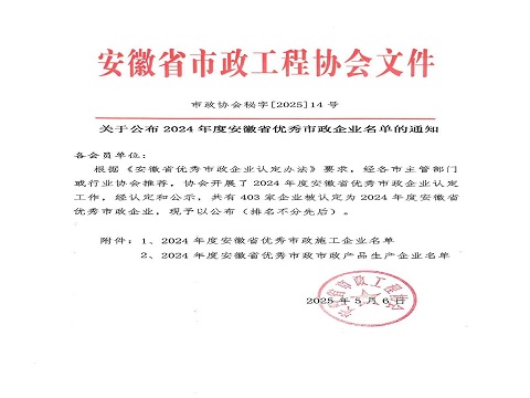 近日,开云在线登录官网-开云中国 接连获得两项省级权威认可:安徽省住房和城乡建设厅公布了《2023年度安徽省优秀建筑业企业名单》,开云在线登录官网-开云中国 有限公司凭借卓越的综合实力、突出的行业贡献和良好的社会口碑再次成功入选。同时又荣获安徽省市政工程协会认定的"2024年度优秀市政企业"称号。这一系列荣誉的取得,充分展现了企业在建筑工程和市政工程领域的综合实力和行业领先地位。
