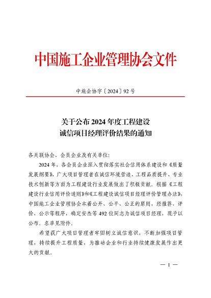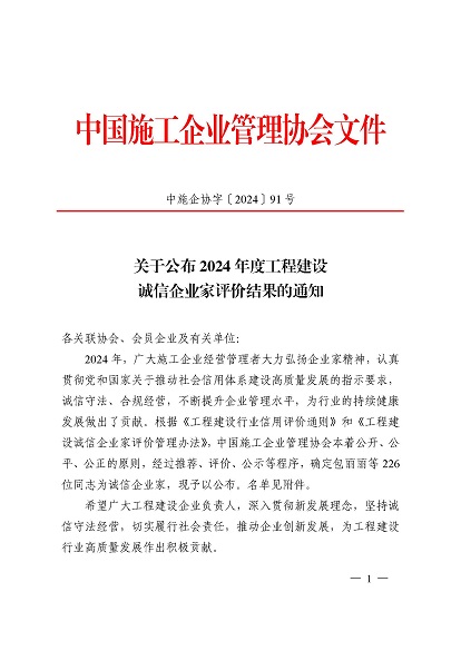 近日,中国施工企业管理协会公布了2024年度第一批工程建设企业信用等级评价结果的通知、工程建设诚信企业家评价结果、工程建设诚信项目经理名单。开云在线登录官网顺利通过AAA级信用企业的年审,继续保持AAA信用等级的殊荣。开云在线登录官网总经理叶金发获评诚信企业家,项目经理毕星豪获评诚信项目经理。此次荣誉是对开云在线登录官网在工程建设领域的综合实力和诚信经营的高度认可。