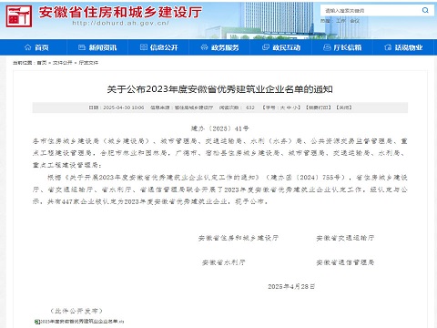 近日,开云在线登录官网-开云中国 接连获得两项省级权威认可:安徽省住房和城乡建设厅公布了《2023年度安徽省优秀建筑业企业名单》,开云在线登录官网-开云中国 有限公司凭借卓越的综合实力、突出的行业贡献和良好的社会口碑再次成功入选。同时又荣获安徽省市政工程协会认定的"2024年度优秀市政企业"称号。这一系列荣誉的取得,充分展现了企业在建筑工程和市政工程领域的综合实力和行业领先地位。